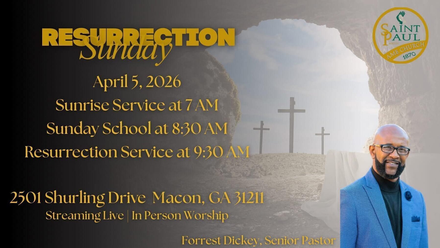 Reverend Forrest Dickey and the Saint Paul Family looks forward to seeing you there in the place.